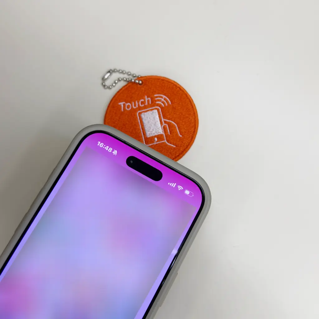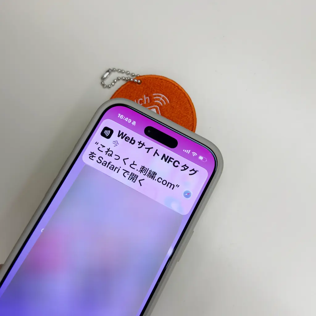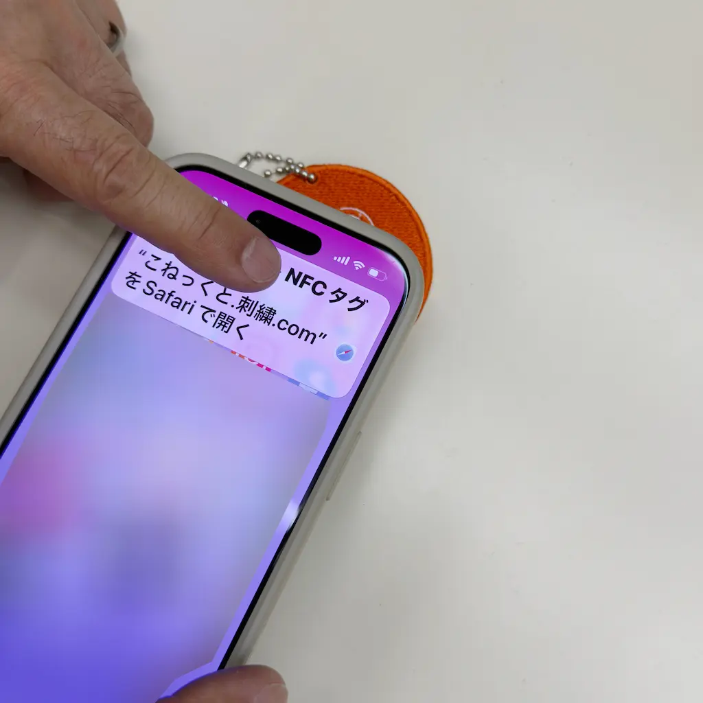 スマホがワッペンに埋め込まれているNFCタグに反応し、タッチを求めてきます。